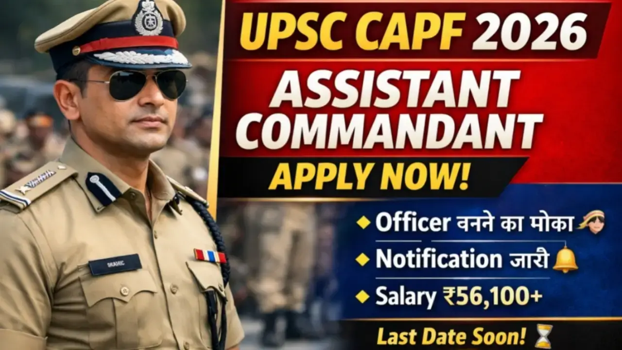 UPSC CAPF Assistant Commandant Recruitment 2026 : संघ लोक सेवा आयोग द्वारा आयोजित केंद्रीय सशस्त्र पुलिस बल (CAPF) असिस्टेंट कमांडेंट परीक्षा देश के प्रतिष्ठित भर्ती परीक्षाओं में से एक मानी जाती है। इस परीक्षा के माध्यम से अर्धसैनिक बलों में अधिकारी स्तर पर नियुक्तियां की जाती हैं। वर्ष 2026 के लिए आयोग ने आधिकारिक अधिसूचना … Read more